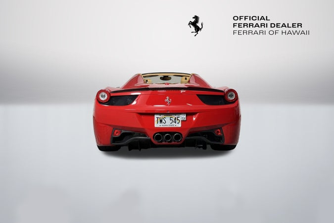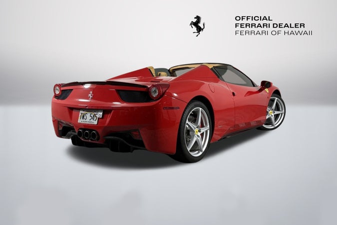 201333,265 miFERRARI APPROVED458 Spider$254,995exterior colorRosso Corsainterior colorBeige Available atFerrari of Hawaii